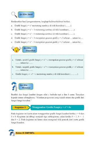 Pada kegiatan ini kamu akan menggambar grafik fungsi kuadrat ketika c = 0 dan