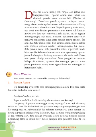 Ieu di handap aya conto téks omongan panata acara. Pék baca sarta