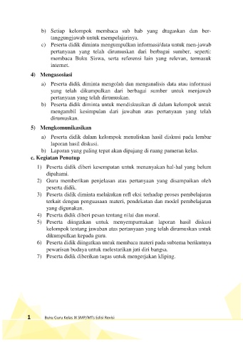 b) Peserta didik diminta untuk mendiskusikan di dalam kelompok untuk