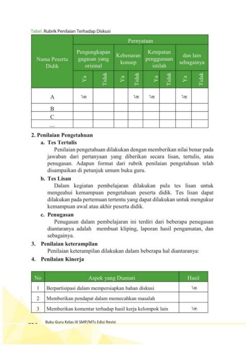 Tabel. Rubrik Penilaian Terhadap Diskusi