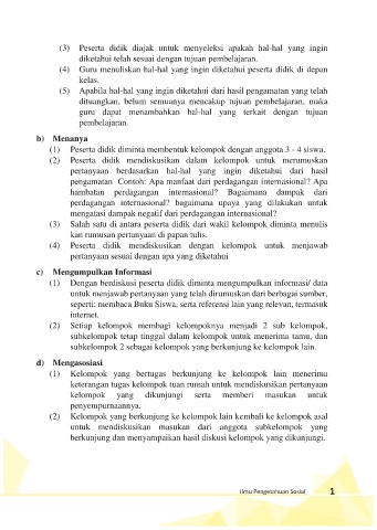 (1) Dengan berdiskusi peserta didik diminta mengumpulkan informasi/ data