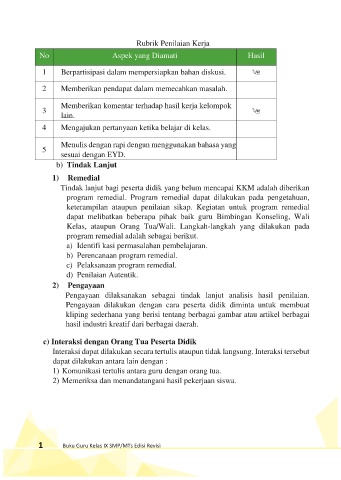 1) Komunikasi tertulis antara guru dengan orang tua.