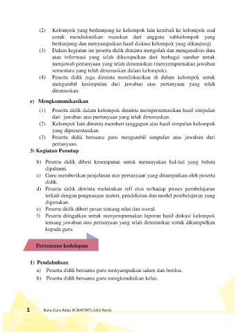 (1) Peserta didik dalam kelompok diminta mempresentasikan hasil simpulan