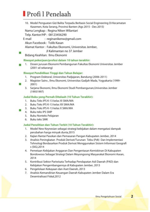 1. Dosen jurusan Ekonomi Pembangunan Fakultas Ekonomi Universitas Jember