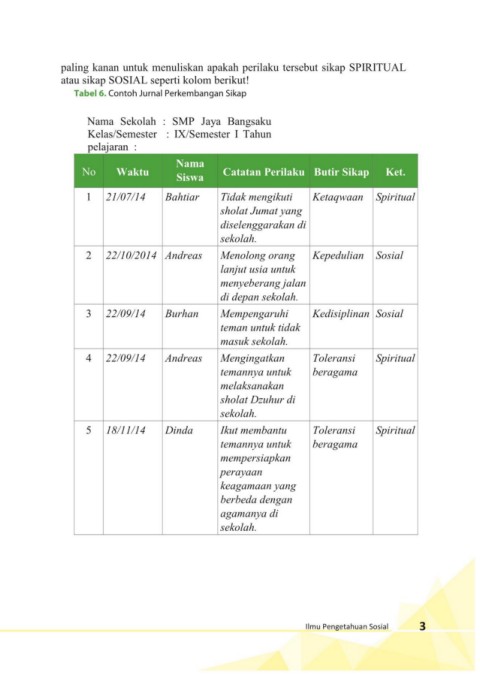 Tabel 6. Contoh Jurnal Perkembangan Sikap