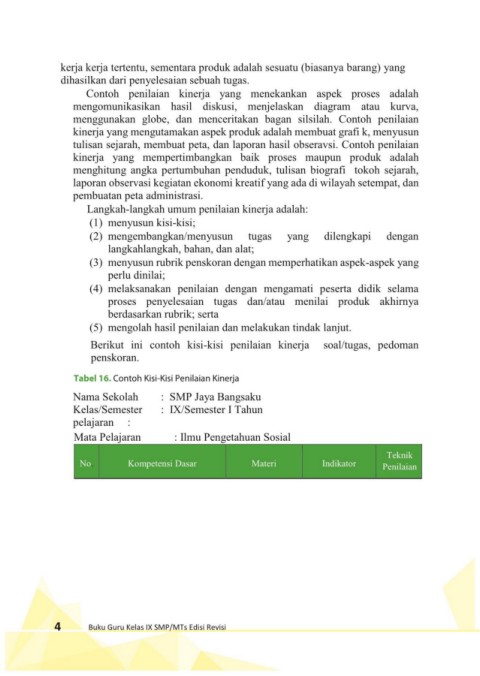 Tabel 16. Contoh Kisi-Kisi Penilaian Kinerja