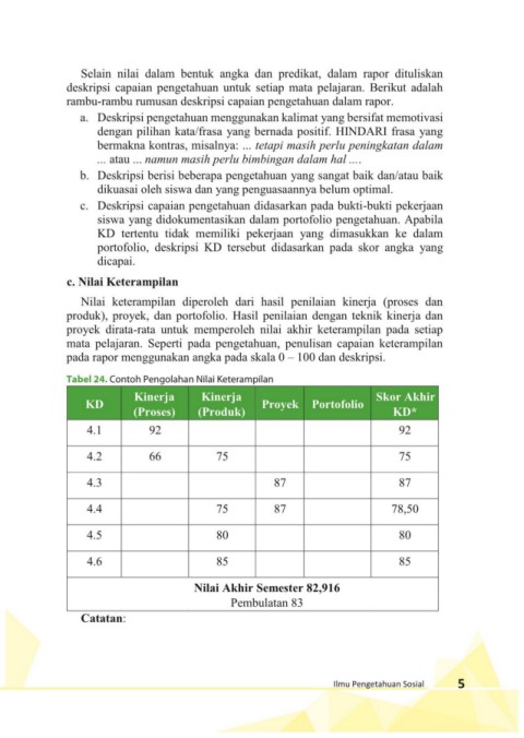 Selain nilai dalam bentuk angka dan predikat, dalam rapor dituliskan