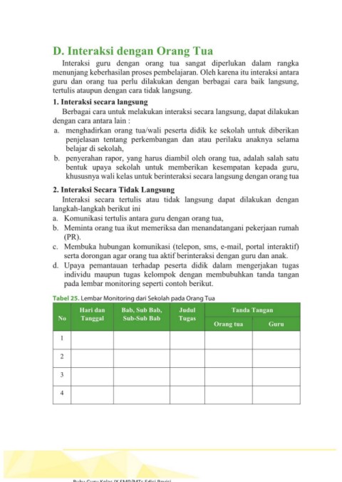 Tabel 25. Lembar Monitoring dari Sekolah pada Orang Tua