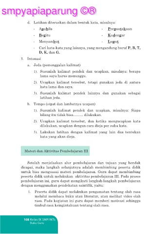 peserta didik untuk melakukan aktivitas pembelajaran III. Pada proses