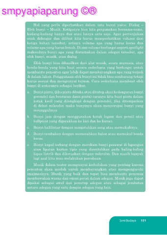 di dalam lakon. Penggunaan efek bunyi ini tidak bisa sembarang tetapi