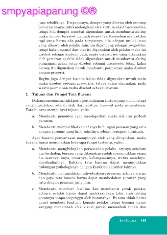 perannya tanpa terganggu oleh busananya. Busana tidak harus