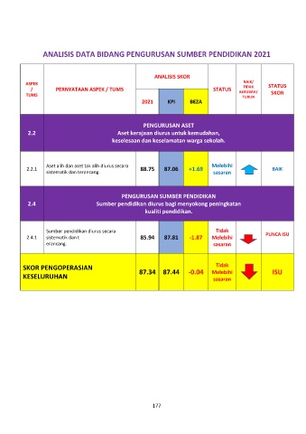 SKOR PENGOPERASIAN 87.34 87.44 -0.04 Tidak ISU