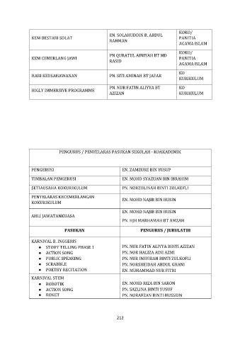 PENGURUS / PENYELARAS PASUKAN SEKOLAH - KOAKADEMIK