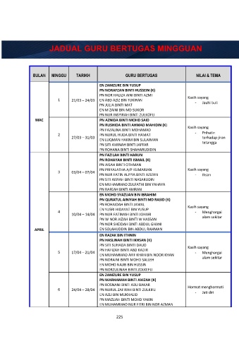 BULAN MINGGU TARIKH GURU BERTUGAS NILAI & TEMA