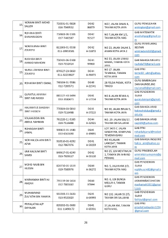 20. ROHAYAH BINTI ISMAIL 740104-01-5586 DG48 28 FELDA PASAK, KOTA DAN KAUNSELING