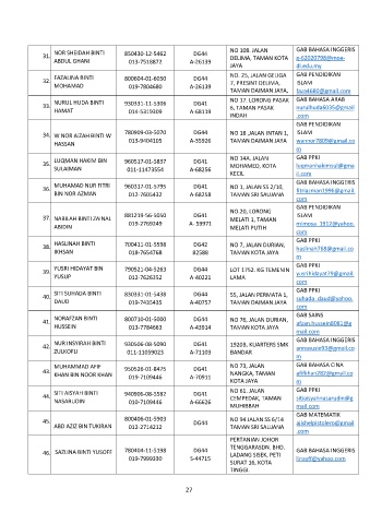 46. SAZLINA BINTI YUSOFF 780404-11-5198 DG44 TENGGARASDN. BHD. GAB BAHASA INGGERIS