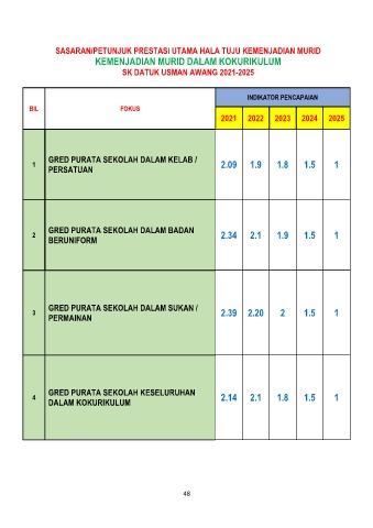 SASARAN/PETUNJUK PRESTASI UTAMA HALA TUJU KEMENJADIAN MURID