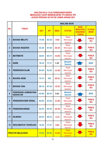 1 BAHASA MELAYU 74.48 83.50 -9.02 Mencapai PUNCA