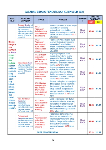 SASARAN BIDANG PENGURUSAN KURIKULUM 2022