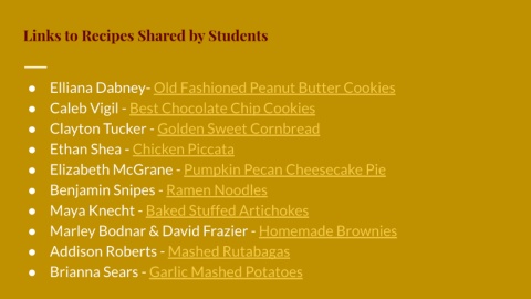 Links to Recipes Shared by Students