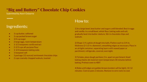 ● 1 cup butter, softened gradually beat into butter mixture. Stir in chocolate chips and