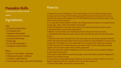 ▢2/3 cup canned pumpkin cooling rack. (This allows it to cool underneath the roll, and keeps the cake from sweating).
