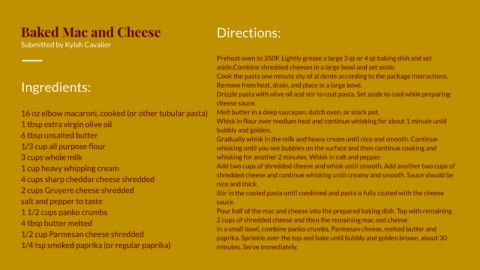 1 1/2 cups panko crumbs Pour half of the mac and cheese into the prepared baking dish. Top with remaining