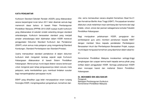 Kurikulum Standard Sekolah Rendah (KSSR) yang dilaksanakan nilai, serta memasukkan secara eksplisit Kemahiran Abad Ke-21
