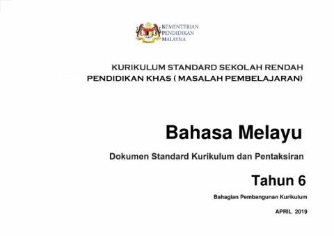 PENDIDIKAN KHAS ( MASALAH PEMBELAJARAN) Bahasa Melayu Tahun 6 Bahagian Pembangunan Kurikulum APRIL 2019