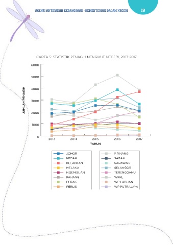 AGENSI ANTIDADAH KEBANGSAAN • KEMENTERIAN DALAM NEGERI 19 CARTA 5: STATISTIK PENAGIH MENGIKUT NEGERI, 2013-2017