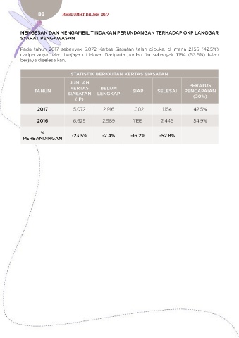 Pada tahun 2017 sebanyak 5,072 Kertas Siasatan telah dibuka, di mana 2,156 (42.5%)