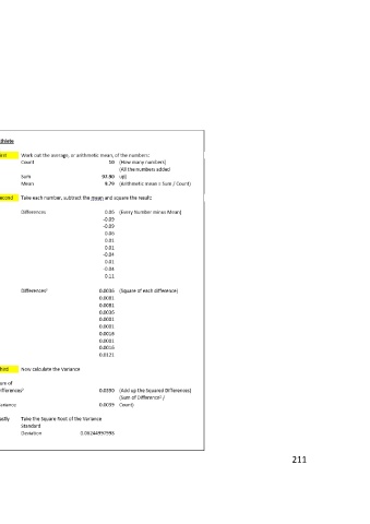 Based on Excel Spreadsheet Formula =STDEV.P (J1:J10) *Must apply 2 decimal point Based on Manual Calculation 211