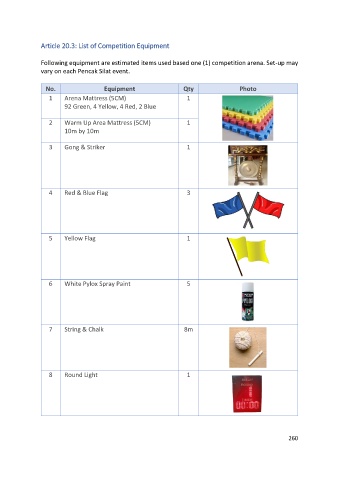 Following equipment are estimated items used based one (1) competition arena. Set-up may