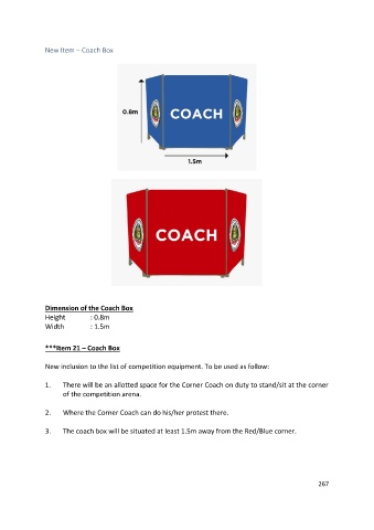 3. The coach box will be situated at least 1.5m away from the Red/Blue corner.
