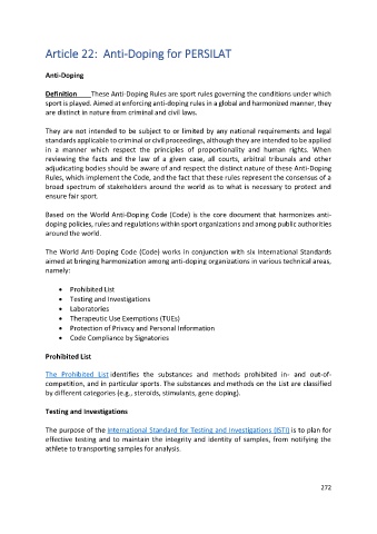 Article 22: Anti-Doping for PERSILAT