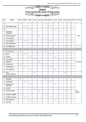 BIL NAMA MAC APRIL MEI JUN JULAI OGOS SEPT OKT NOV DIS JAN FEB CATATAN