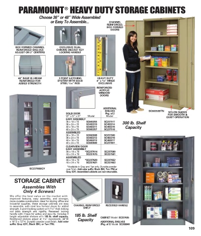 height adjustable shelves with 185 lb. shelf capacity. CABINET Model SC237635