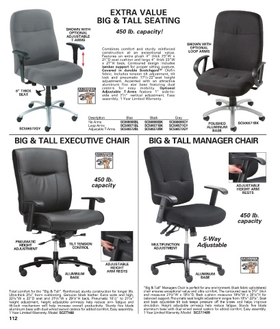Total comfort for the “Big & Tall”. Reinforced, sturdy construction for longer life. chair ensures exceptional value and ultra comfort. The contoured seat is 3 /2” thick