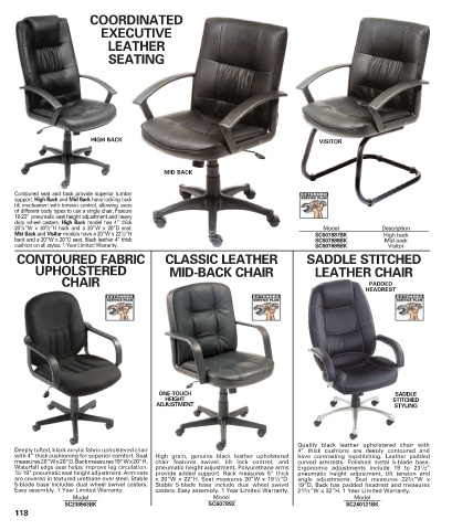 Mid Back and Visitor models have a 20”W x 22 /2”H SC607887BK High back