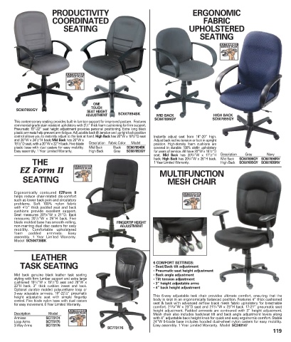 control. Five blade nylon base with dual casters body is kept in an ergonomically balanced position. Features 4” thick cushioned