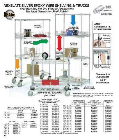 UTILITY CART† 800 lb. Capacity, 38”H. 48 x 18 x 69 SC168192 36 x 18 x 63 SC990131 SC990147 SC990163