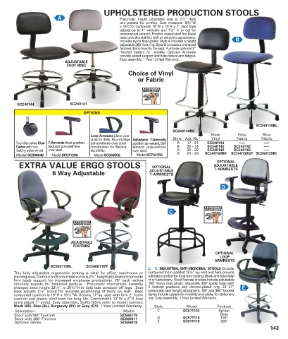 firm body support for increased employee productivity. 25° back recline vinyl upholstery. Stool footrest choices include adjustable