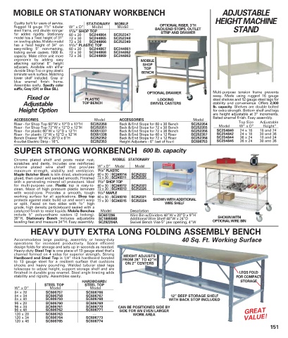 leveling feet and measure 34”H. Easy assembly. SC292204A Swivel Bench Vise 5” jaw opening, 4”W OPTIONAL WIRE BIN