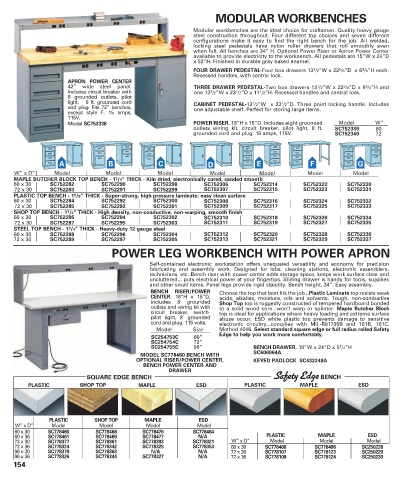 available to provide electricity to the workbench. All pedestals are 15”W x 24”D