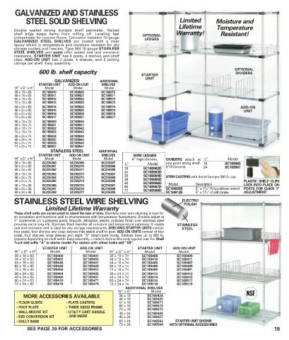 posts, four shelves, snap sleeves and eight “S” attachment hooks. Shelves have up to 800 lb.