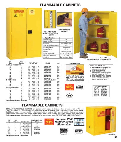 OSHA requirements. Constructed of 18-gauge steel. MANUAL-CLOSE door must be physically closed. SELF-