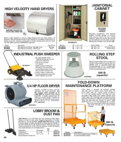 SC640800 High Velocity Hand Dryer - Steel Cover White SC269903 36 x 18 x 72 BK, GY, TN Assembled