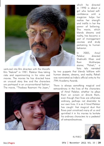risks and experimenting in his roles and human desires, dreams, and reality. Paheli
