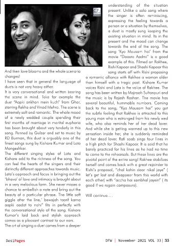 Kishore add to the richness of the song. You pivotal point of the entire song! Rakhee stabilizes