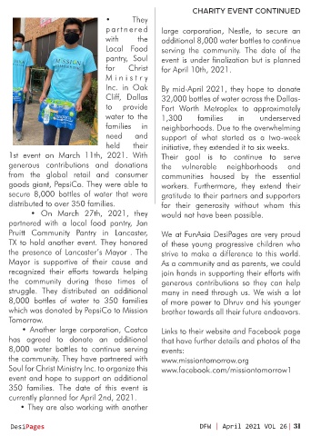 which was donated by PepsiCo to Mission brother towards all their future endeavors.